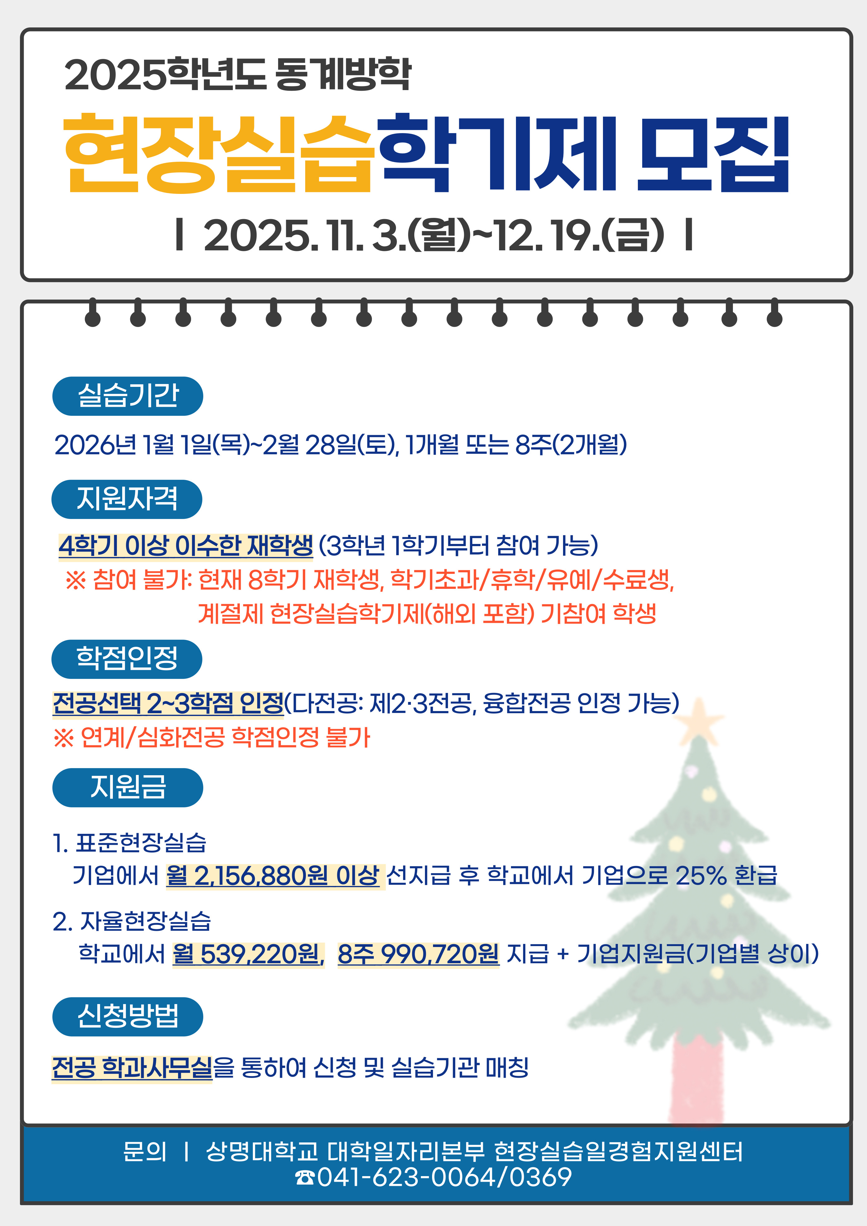 [현장실습·일경험지원팀] 2025학년도 동계방학 현장실습학기제 시행 공고
